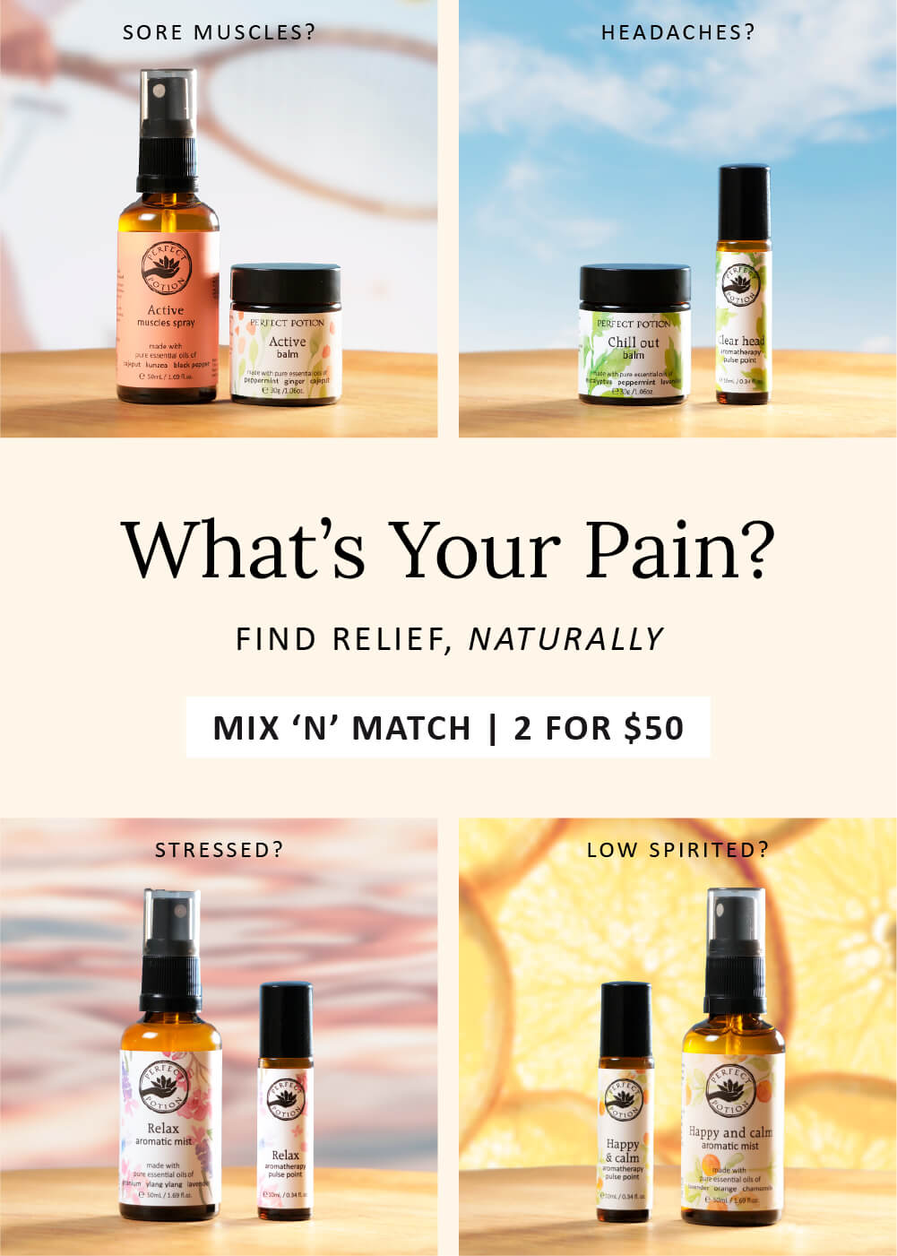 Perfect Potion is the dream of passionate and qualified Aromatherapists, Naturopaths and Acupuncturists, Salvatore Battaglia and Carolyn Stubbin. Founded in 1991, and born from a passion for natural therapies, Perfect Potion is an Australian, family-owned pioneer in the creation of unique, sustainable, certified natural and organic aromatherapy and skin care preparations.